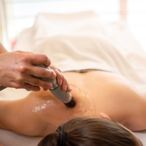 These shockwaves will cause movement of the particles in our tissues, resulting in increased blood flow to that area. This, in turn, helps alleviate pain (acute and chronic), improve tissue mobility, and improve the overall healing response.